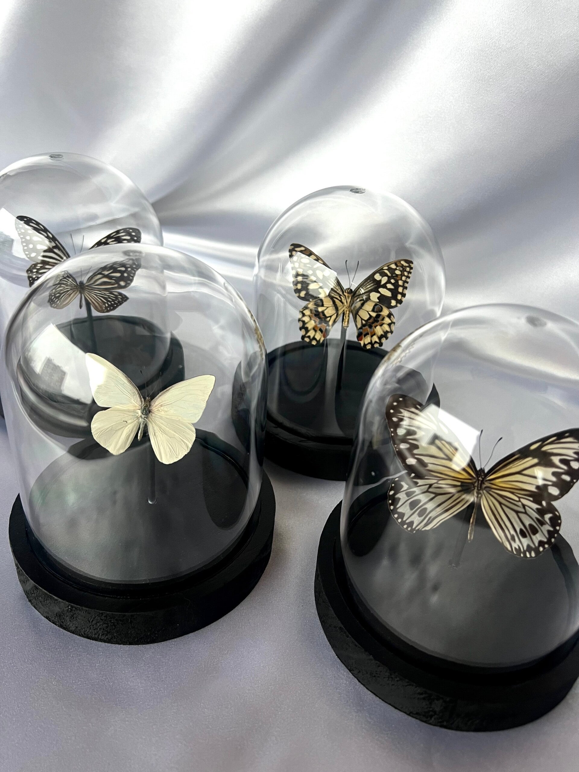 Let op: Plaats de stolp niet in direct zonlicht of bij een warmtebron (zoals een verwarming). UV-licht en warmte kunnen de vleugels broos maken en beschadigen. Geef je vlinders een fijn plekje in huis, dan blijven ze prachtig!