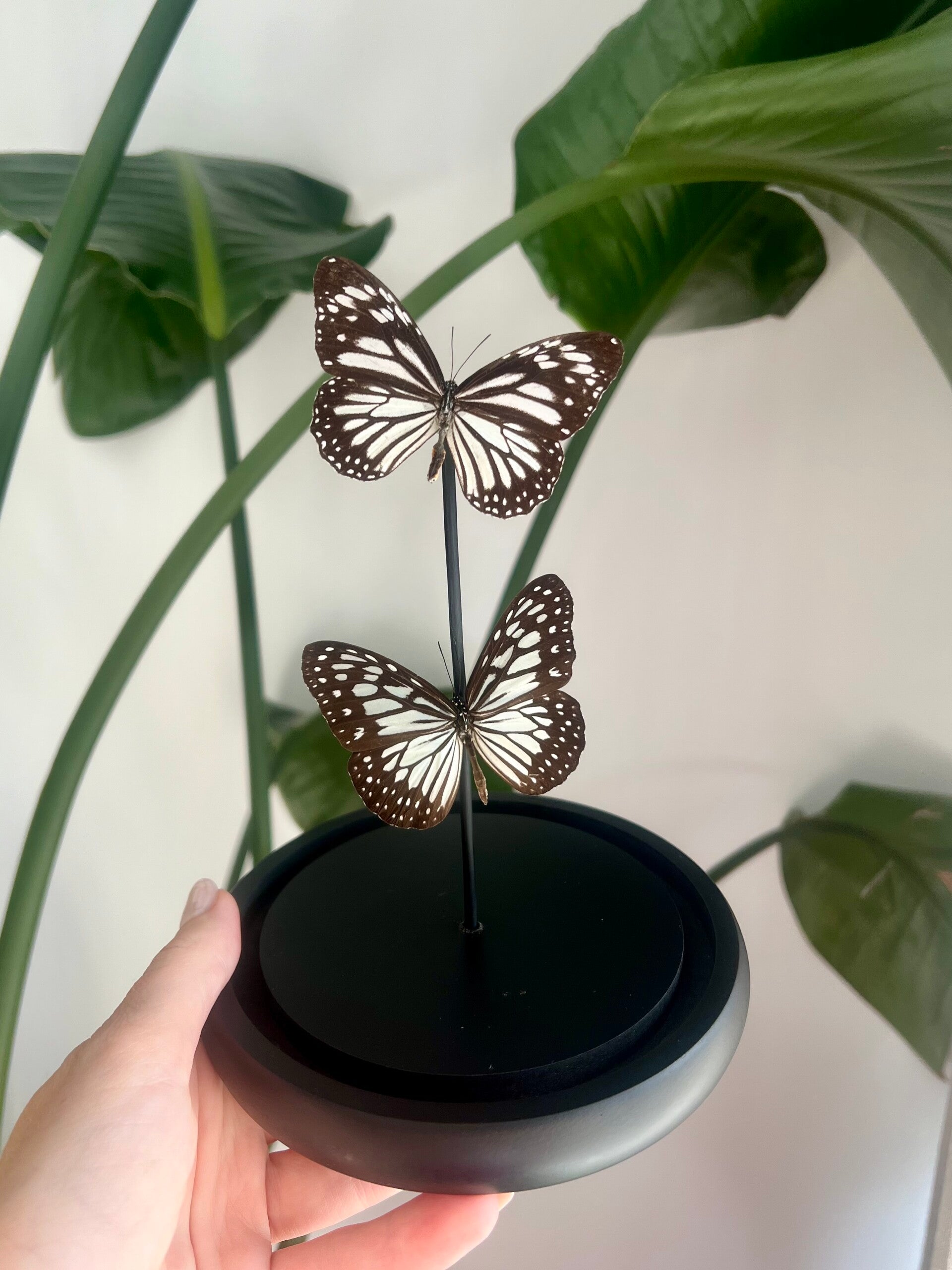 Let op: Plaats de stolp niet in direct zonlicht of bij een warmtebron (zoals een verwarming). UV-licht en warmte kunnen de vleugels broos maken en beschadigen. Geef je vlinders een fijn plekje in huis, dan blijven ze prachtig!