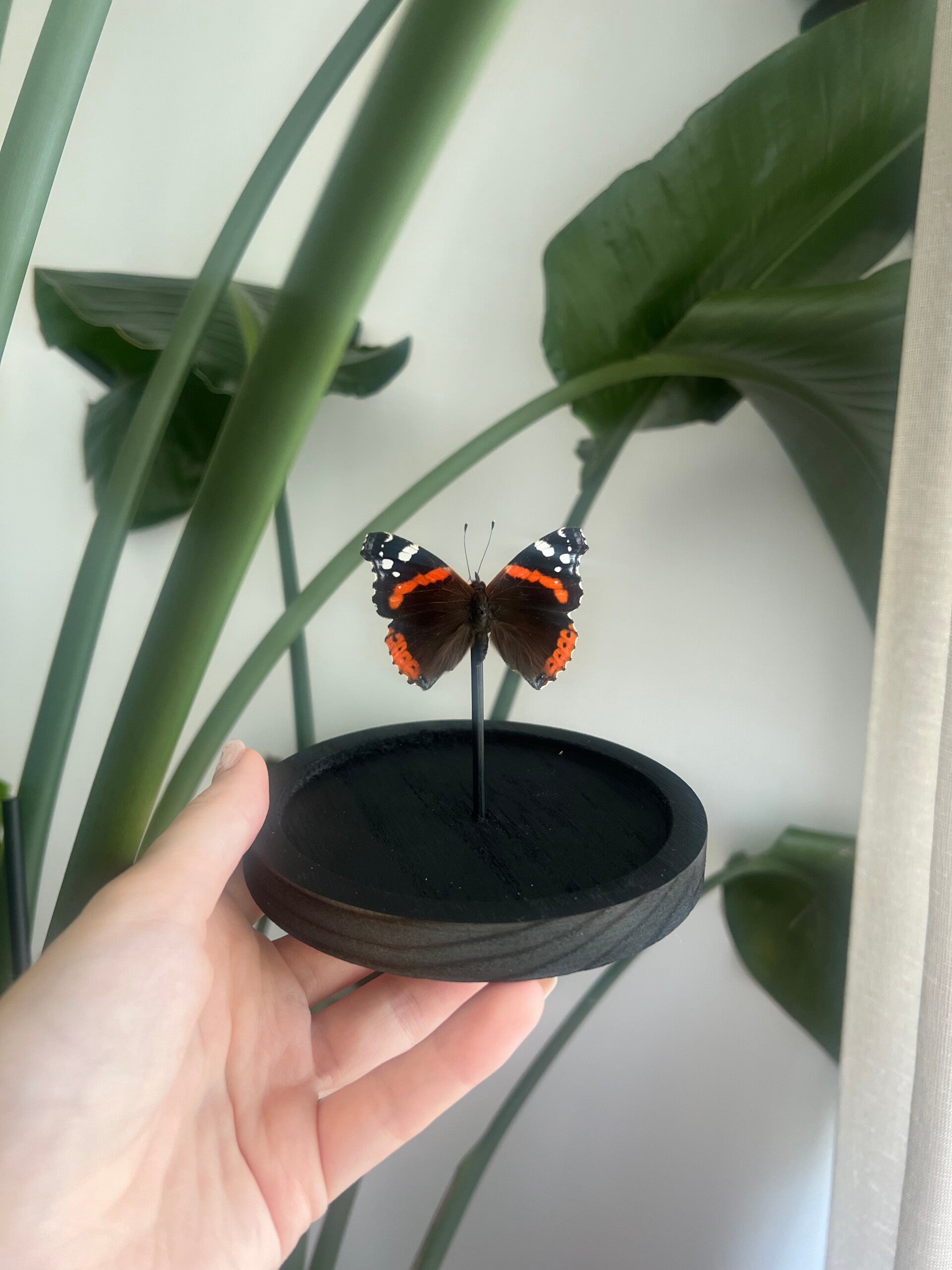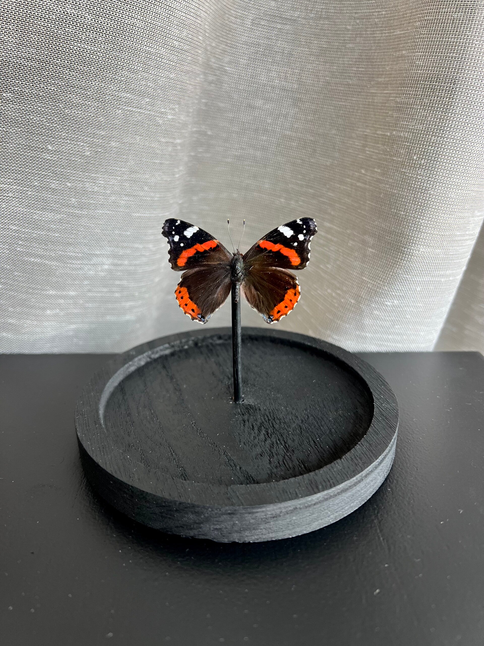Kleine vlinderstolp met opgezette vlinder welke je misschien wel herkent uit Nederland! De Vanessa Atalanta in het glazen stolpje is namelijk afkomstig uit Europa.