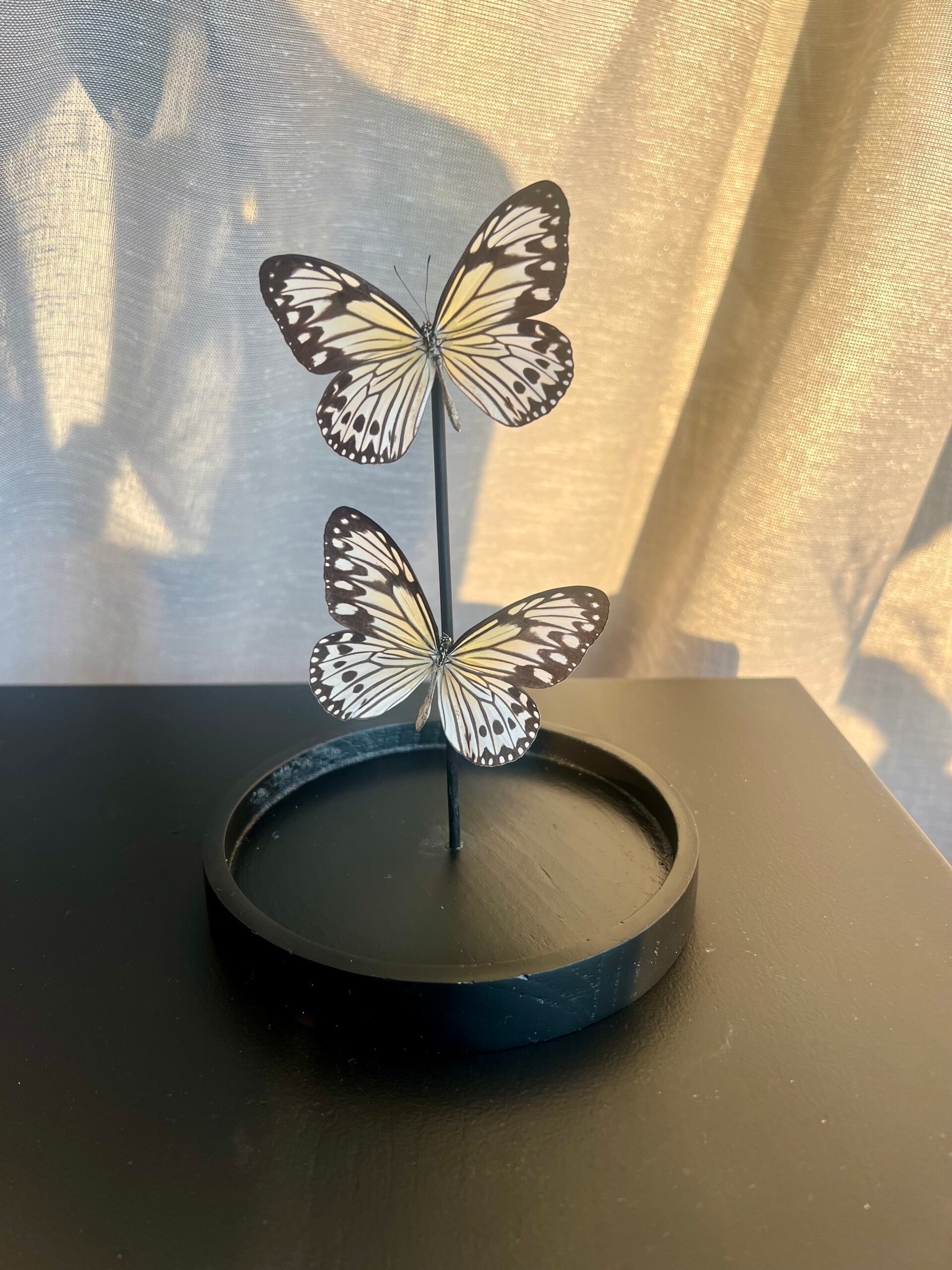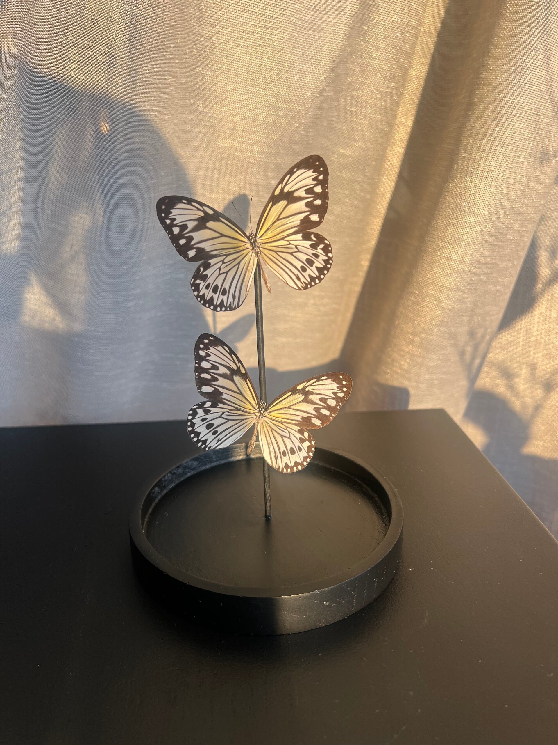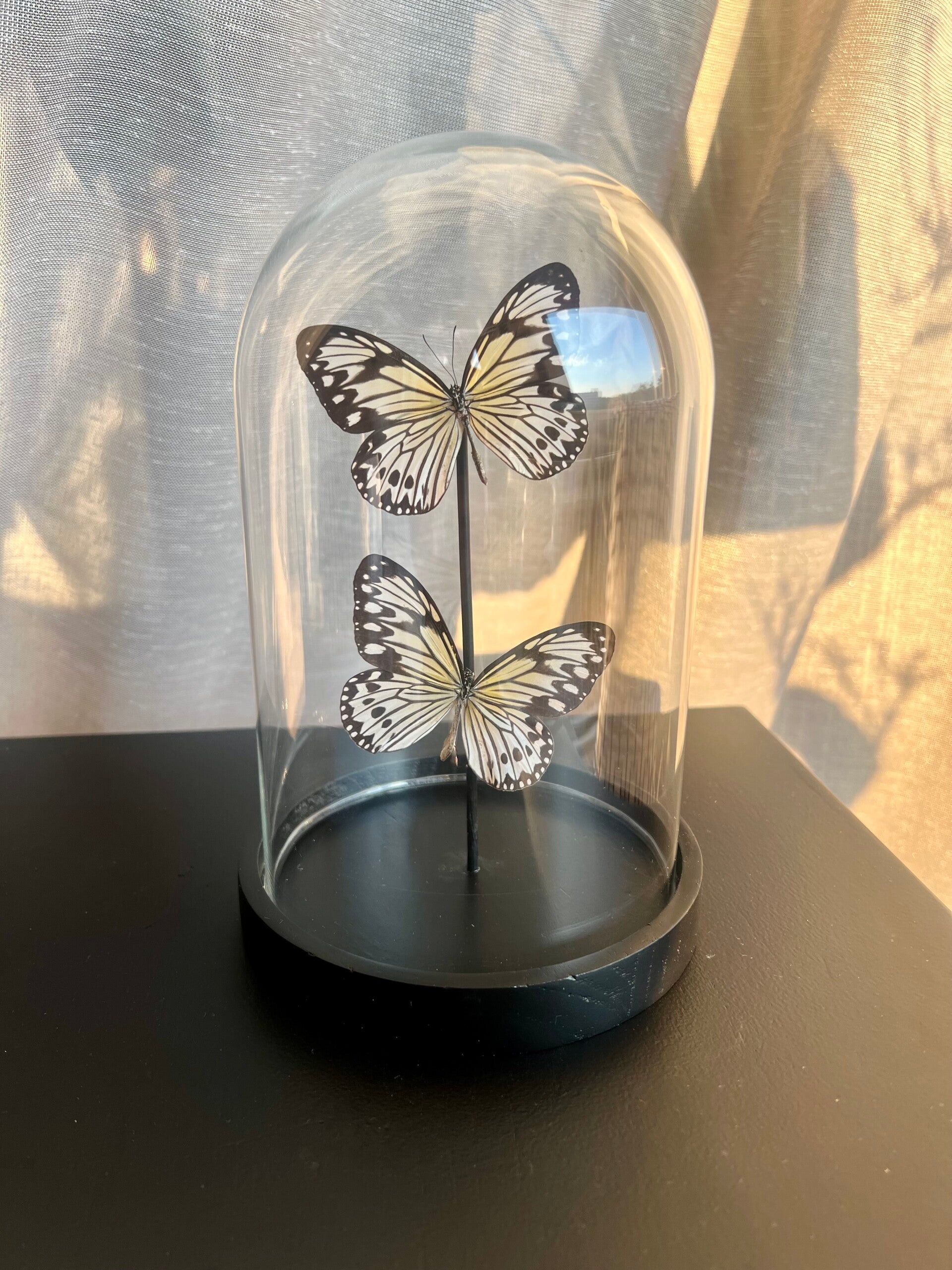 Let op: Plaats de stolp niet in direct zonlicht of bij een warmtebron (zoals een verwarming). UV-licht en warmte kunnen de vleugels broos maken en beschadigen. Geef je vlinders een fijn plekje in huis, dan blijven ze prachtig!
