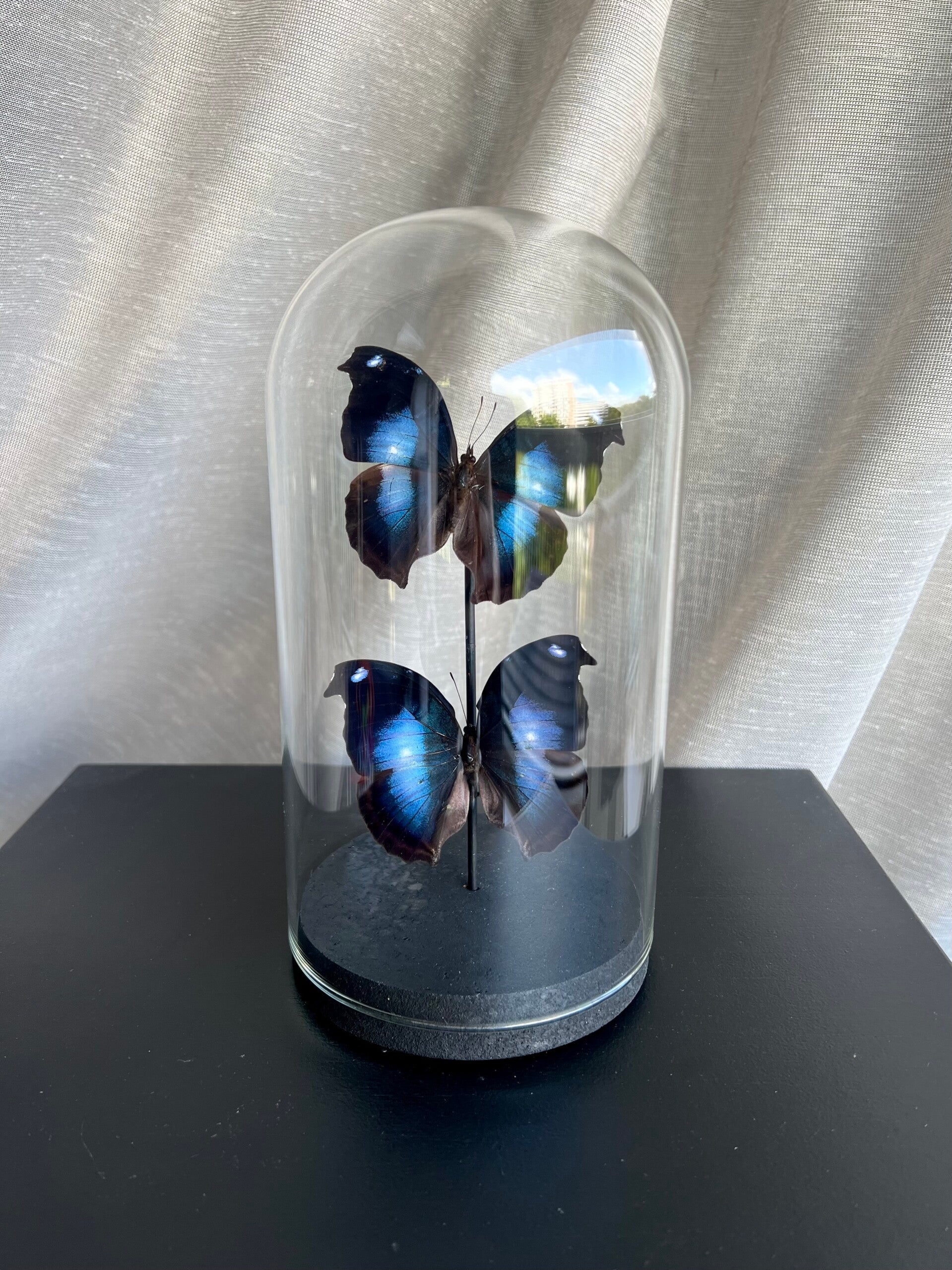 Let op: Plaats de stolp niet in direct zonlicht of bij een warmtebron (zoals een verwarming). UV-licht en warmte kunnen de vleugels broos maken en beschadigen. Geef je vlinders een fijn plekje in huis, dan blijven ze prachtig!